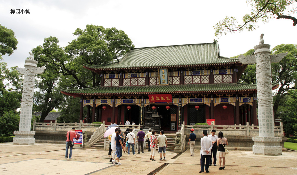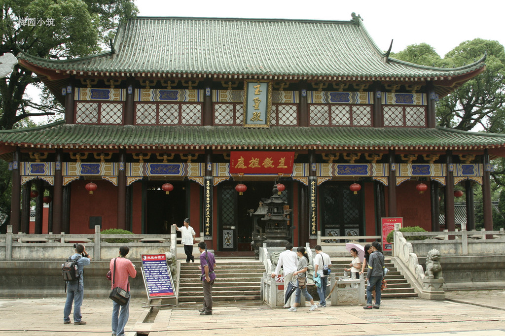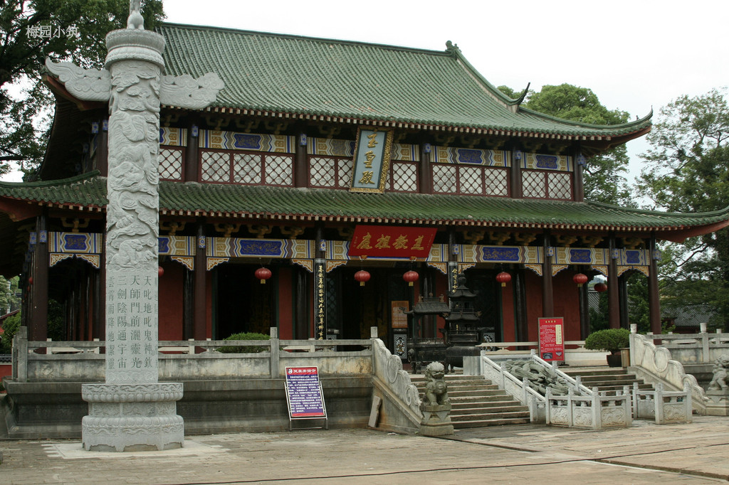 门内大院,有树龄800年以上的樟树十余株,有七元至正十一年铸造的铜钟。玉皇殿是1993年建造的,占地600平方米,供奉十五尊神像。