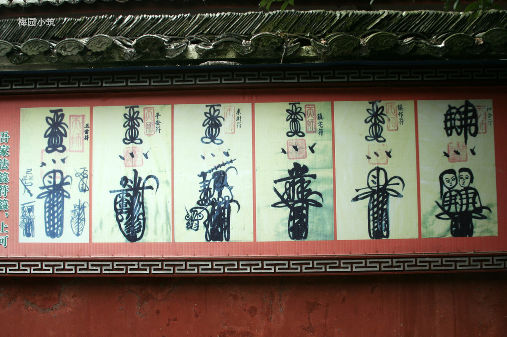 很喜欢看天师府的对联,背靠青山,门临绿水,天师府的对联也更为雅致。头门上有一副对联:“麒麟殿上神仙客,龙虎山中宰相家”。很有气势!二门上的一副对联是:“道高龙虎伏,德重鬼神钦”,颇有一种舍我其谁的味道。财神殿的生意历来比较兴隆,门前一幅对联很有点诱惑,又有点威胁:“莫笑我泥塑偶像许个愿试试,那怕你多财善贾不烧香瞧瞧。”有趣!