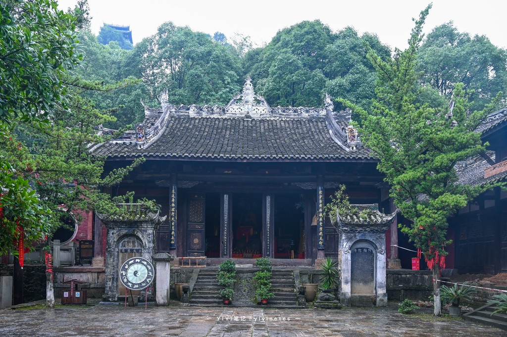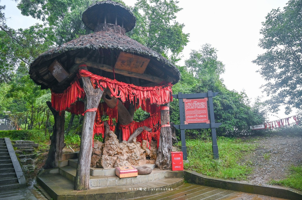 三绝云岩寺:始建于唐,明末焚于兵火,清雍正三年(1725年)重修。云岩寺在唐乾符年间(公元874年)就有东西二院,历经唐、宋、元、明、清毁茸交替,及佛道相争,形成“东禅林,西道观”的格局。像云岩寺这样建于山脊,背负三座主峰,坐北朝南而又是中轴线对称布局的古寺院建筑群,在全国是罕见的。寺前山门外有李白赞圌山石碑一通,碑文“樵夫与耕者,出入画屏中”,是国民党元老于右任手书镌刻而成。半山腰的路越来越陡,两块大石之间只有一条小路可以通行,这里被称作一线天。