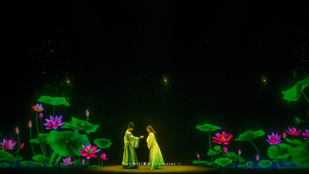 一片一片的青莲也象征了李白号青莲居士,灯光加上背景很有氛围感呢,灯影交错,星光闪烁,我们仿佛能看到李白那颗闪耀明星曾经辉煌。