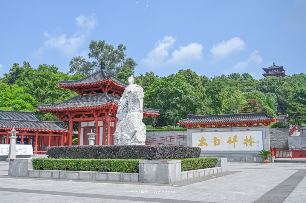 太白碑林是 江油 青莲旅游经济开发区李白故里的其中一部分,是国家4A级景区。青莲镇建了高铁站,h高距离铁站也是很近的,这样对于很多人而言交通就比较便利了,四周随处可见都是绿树蓝天,非常清新治愈,加上红柱白墙也是别有一番韵味,让我们在感受文化的同时,也能将美景尽收于眼底了。