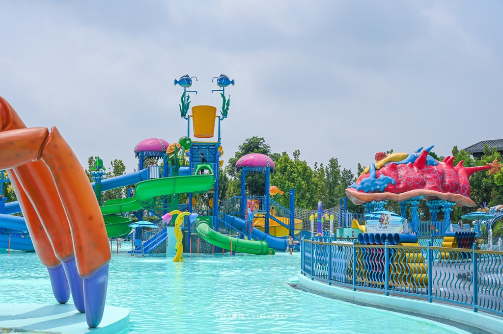 外面还有一片超大型水上乐园,有悬崖滑道、巨龙滑梯等刺激加倍的水上项目,胆子大的人玩着简直不要太欢乐了,儿童水乐汇就很适合带着孩子度过美好的亲子时光,夏天来这里玩水真的太巴适了。