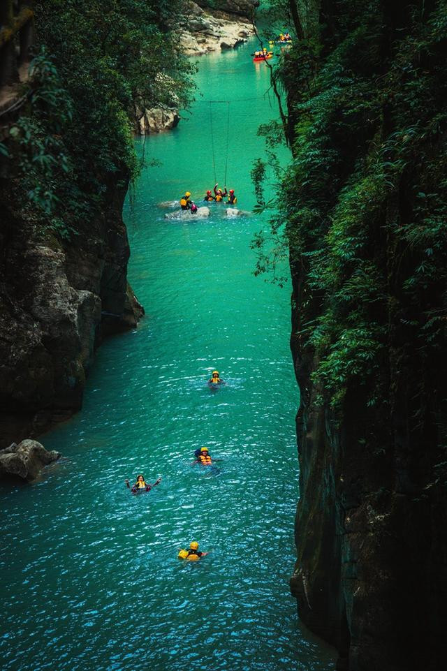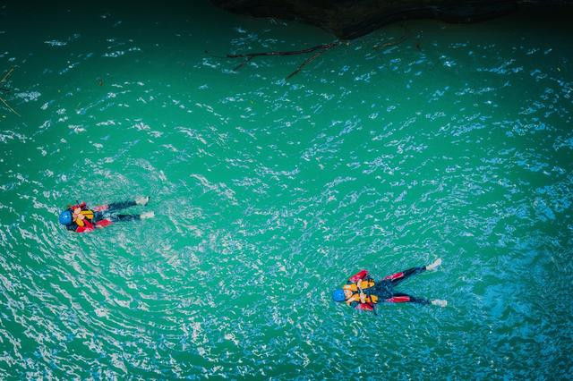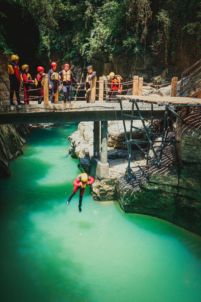 勇敢的人夏天时在河上可以跟着专业教练玩玩高台跳水,顺着水流漂流而下四五公里,野趣十足,最后在水上秋千上拍几张美照,下水后才会知道为什么恩施地心谷被称为避暑胜地,那真是清清亮透心凉。