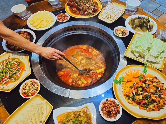 一种是按人头收费的,小菜无限续,合渣是恩施最有特色的食物,也就是用豆子磨成像豆腐渣一样,加上配料豆香浓郁,很下饭。腊土猪蹄子、走地鸡、各种绿色蔬菜,纯天然无污染。