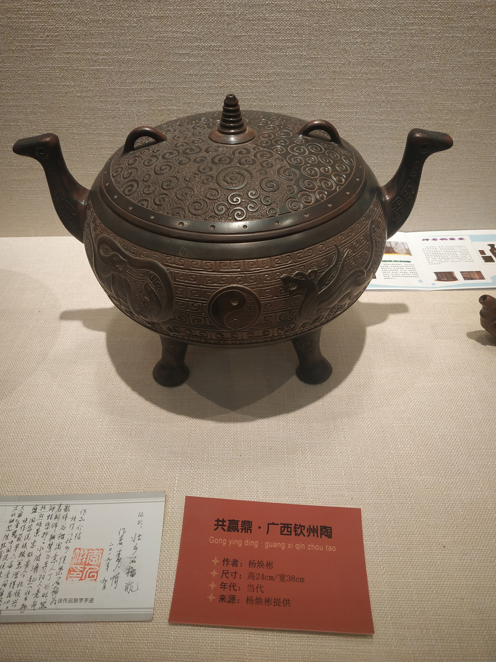 二楼是现代作品,没有拍照,下楼后有出口处有一个展示厅,里面可以买紫陶,说是名家作品,价格最少的都是一千多,买不起买不起