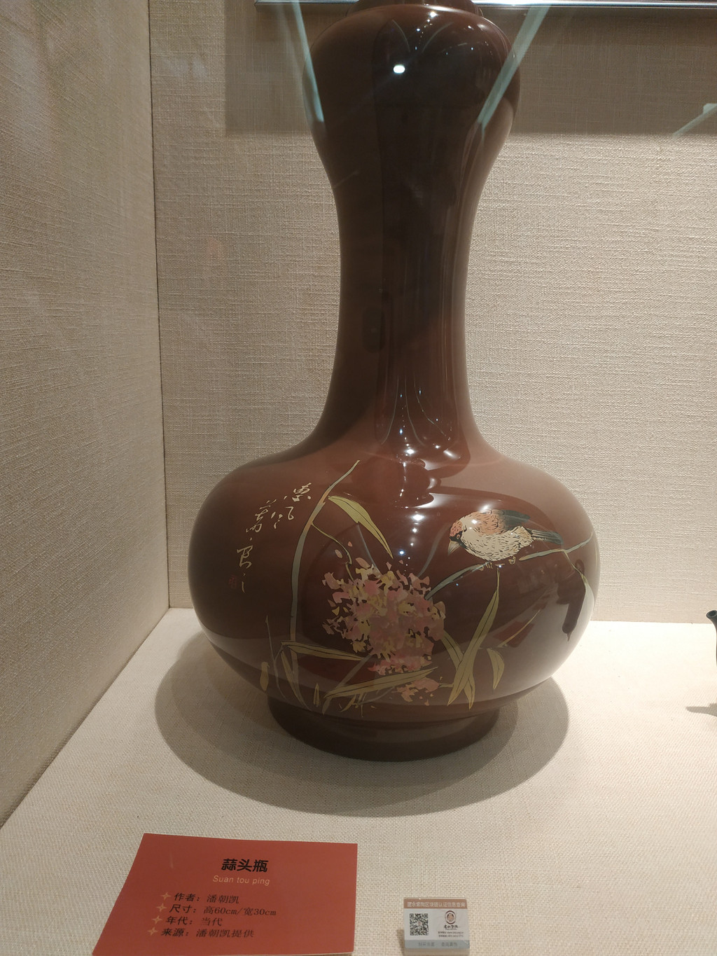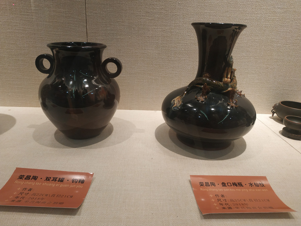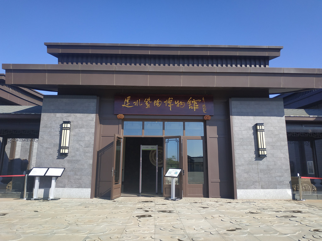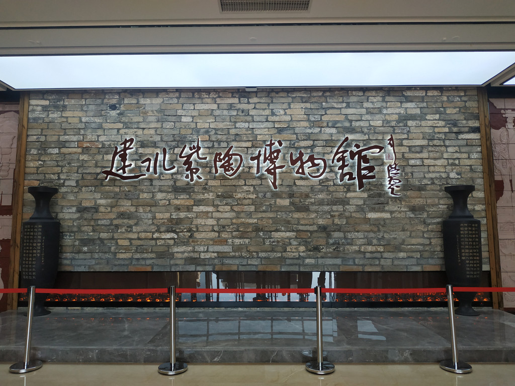 博物馆名字前面的两个紫陶大瓶,高2.19米,象征博物馆2019年建成。