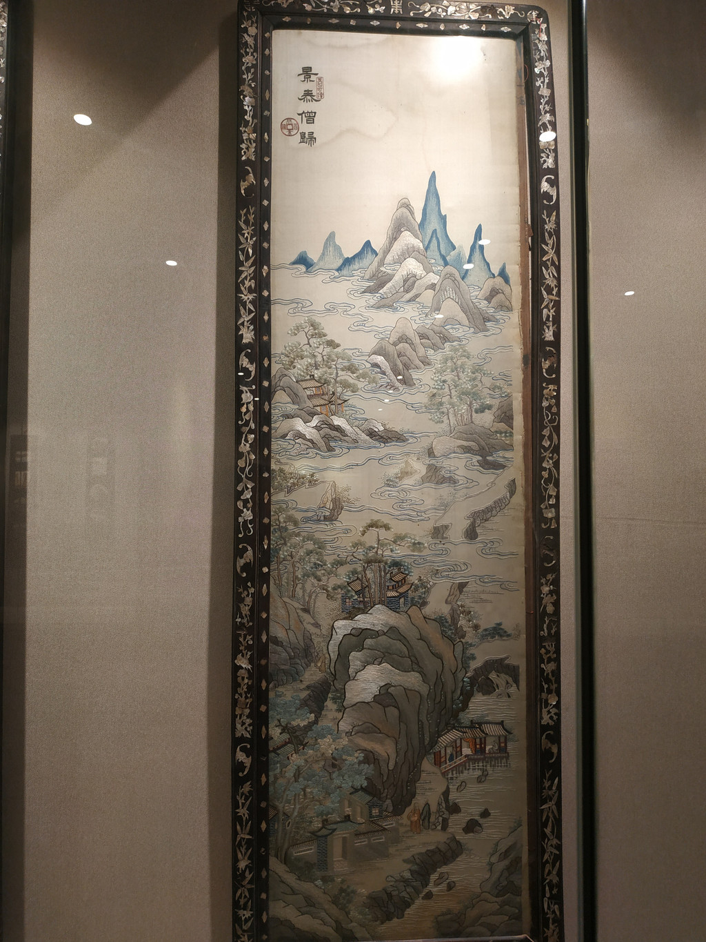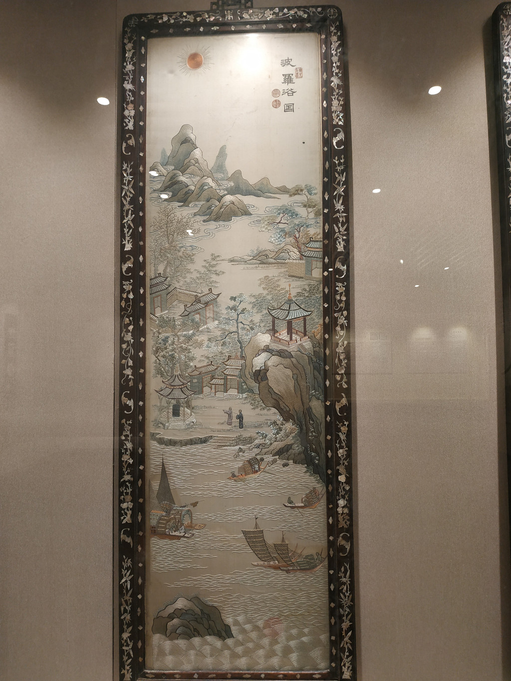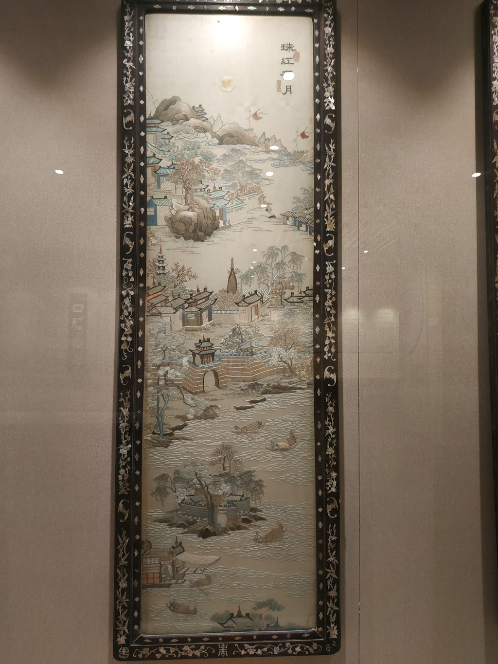 这是羊城八景的刺绣,反映广州的东西,为什么会在这里展示,渊源我不知道,我只知道以后我要对着这个去打卡羊城八景