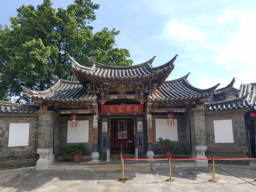 下一站到朱家花园。是清末乡绅朱渭卿兄弟建造的家宅和宗祠,花园坐南朝北,入口为垂花大门。右侧前为家族祠堂,后为内院。祠堂前有水池,水上有戏台、亭阁、庭荫花木等。水池边有右栏。自南往北俯瞰图整组建筑的正前为三大开间的花厅,左右两侧为小姐“绣楼”。花厅前是花园,左右对峙透空花墙,将其自然分隔为东园和西园。花园正前有荷池,树丛,苗圃,花圃散布其间,形成一座既典型而又富地方特色的南方私家园林。朱家花园内雅外秀、形制规整、布局灵活,空间丰富、层次渐进,环境清幽、色彩淡雅、装修有度、结构统一,在丰富的形式中包容了深刻的文化内涵,是内地文化与边疆文化相结合的产物,具有较高的建筑艺术价值。有“西南边陲大观园”之称。