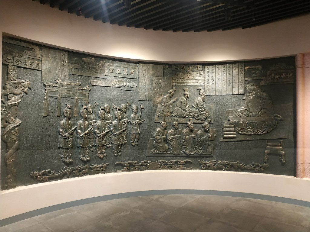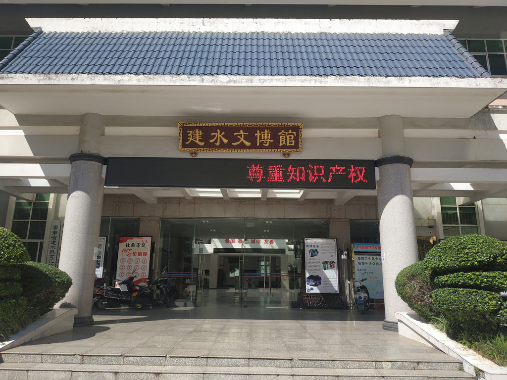 这是一栋和文化馆合用的楼,左边是文化馆,右边是博物馆,博物馆有四个展厅,古达文明、建水紫陶、儒学,还有一个什么我不记得了,馆内东西不多,但类别还是很丰富的,有石器、青铜器、木雕、书画、壁画、陶瓷、刺绣等等。