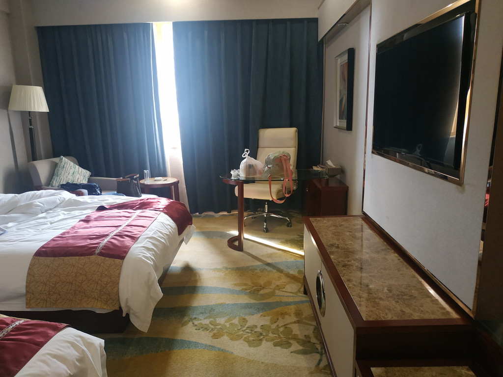 我们从安顺出发,先坐中午的高铁到昆明南,然后在昆明南换乘城际动车到建水,这条线路用的是以前的老铁路改造的,采用160公里时速的动车,到建水2小时左右,票价50元。到了建水站,当地同行直接接我们到昌源大酒店入住,标间1晚220元,后来查了下,是一家三星级的宾馆,也是当地政府部门的接待酒店。