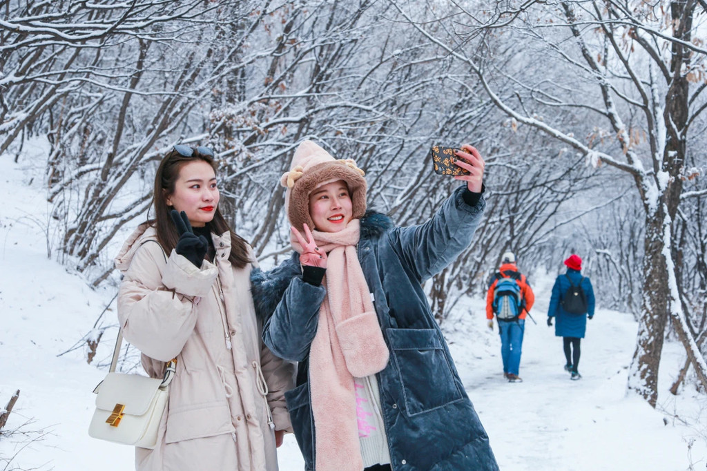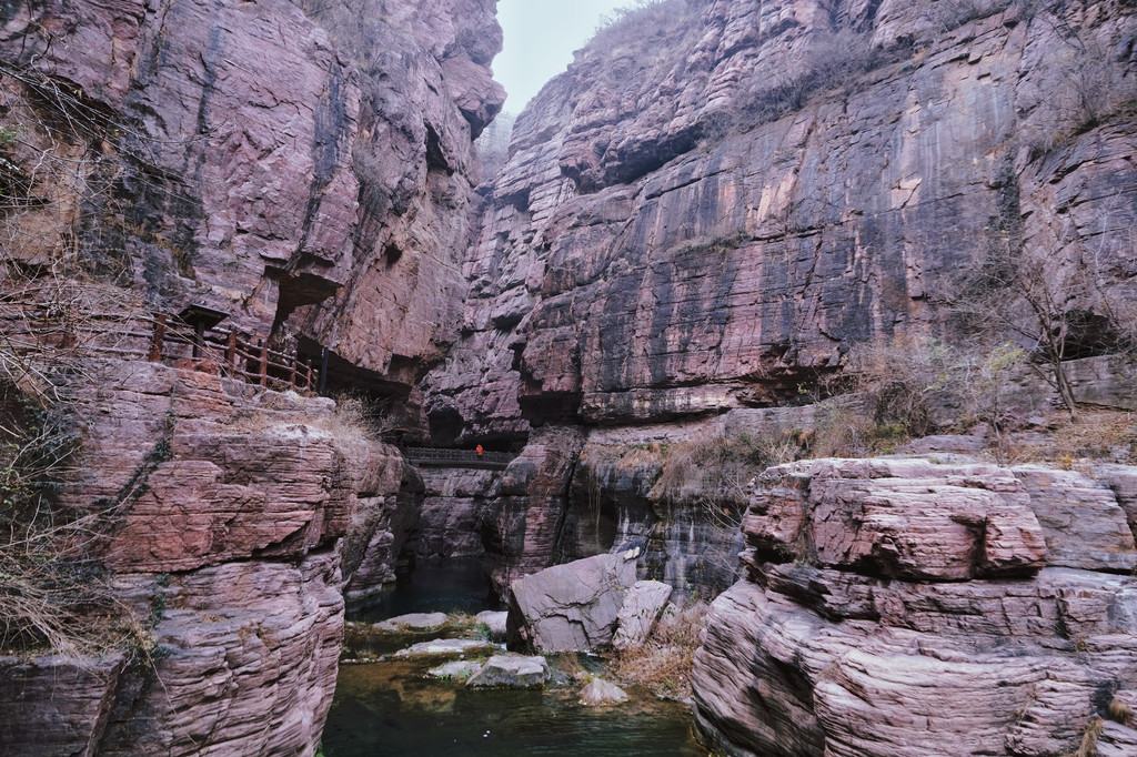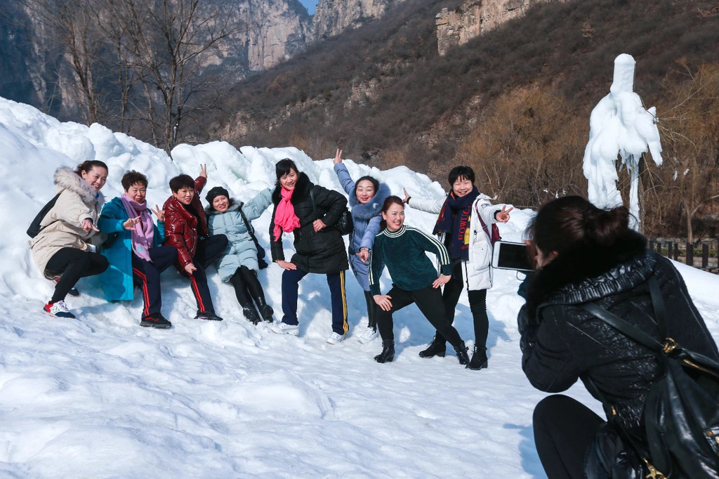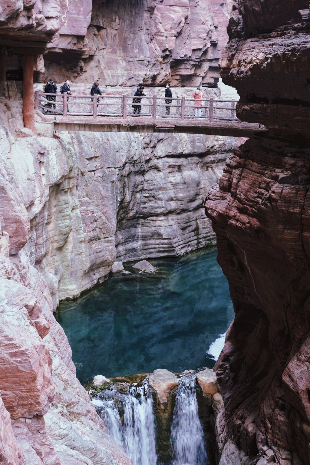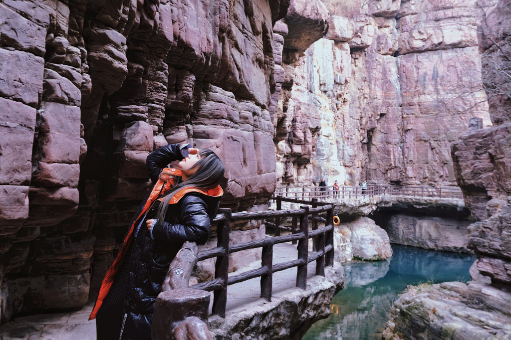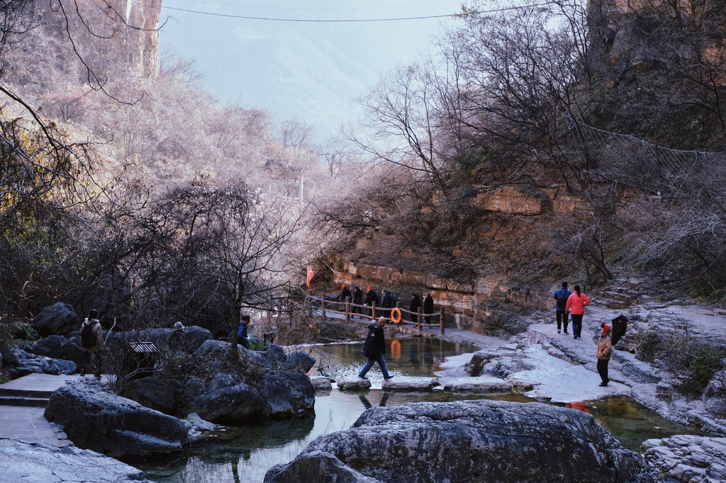 即使寒冷冬日,但是爬山的人也是有很多。因为云台山的冬日也很美。