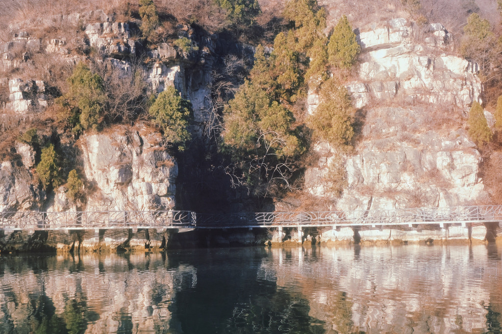 青天河滨水栈道全长8000米,沿大泉湖西岸而建,依山就势,临水傍湖。为赏客近距离观赏大泉湖、骆驼峰、千奇洞、鲸鱼湾等精品景点提供了便利。
