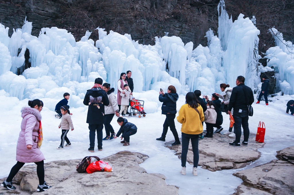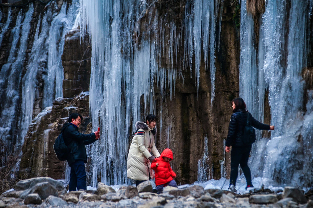 冰笋、冰柱、冰锥层层堆叠,洁白壮观