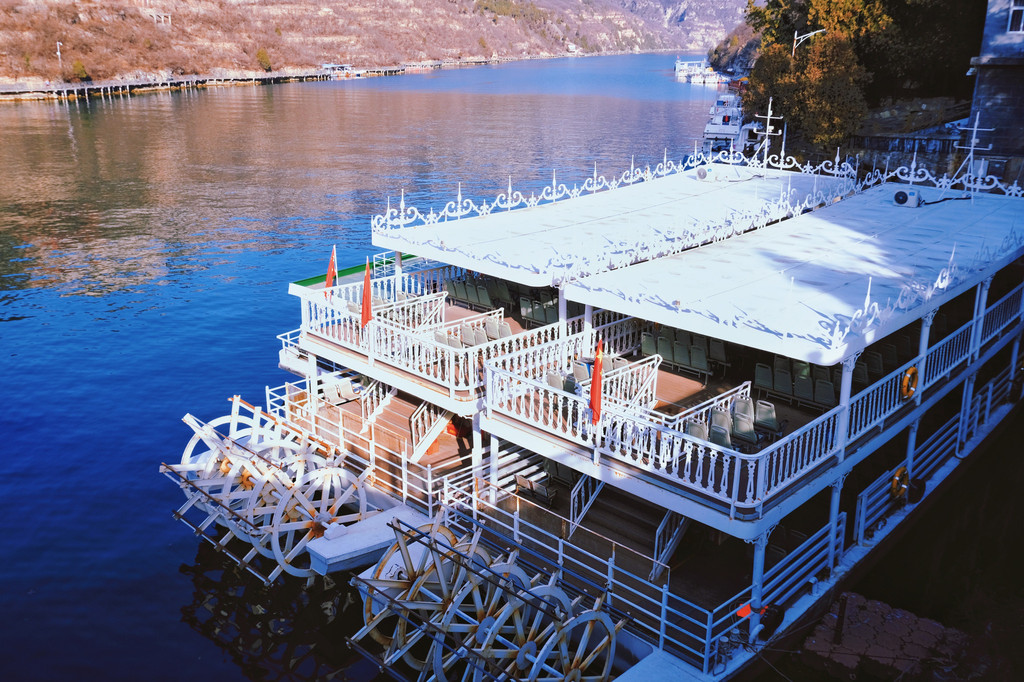 进入西峡,两岸青峰翠绿,水面平缓如镜,杨柳临溪倒影,荆林神韵通幽,古朴小舟伴着暮归的老牛和牧童,一片田园牧歌式的风光呈现在眼前。