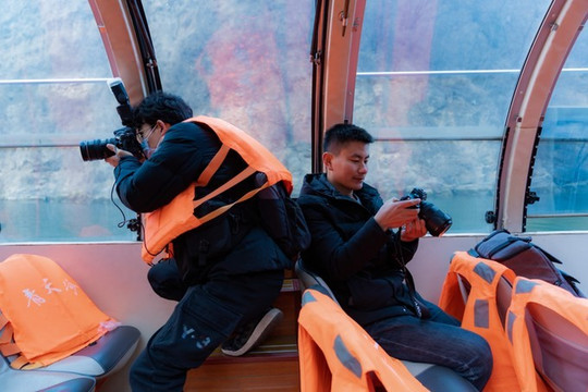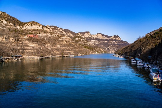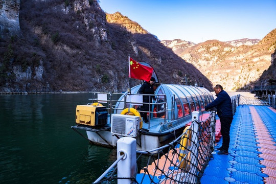 乘坐景区的游船,行驶在丹河的碧波之上,两侧 太行山 脉巍峨,水 秀山 明。船舱是全透明的玻璃,在船内就可以一览青天河的美景,毕竟现在正值寒冬。