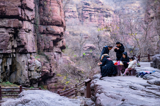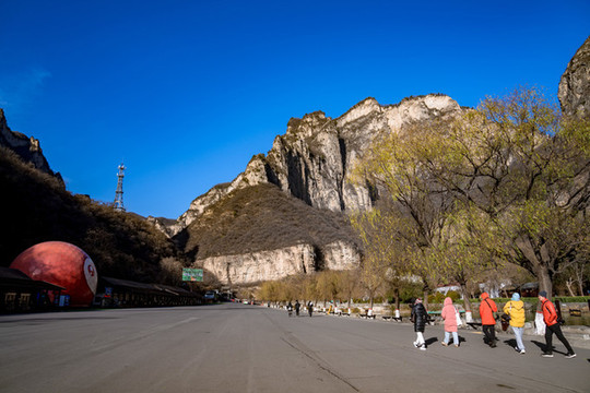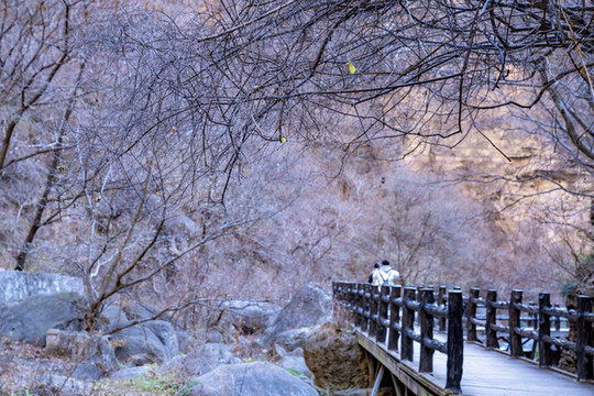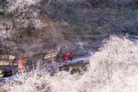 这个季节云 台山 还是有点冷,植物的叶子也所剩无几,从入口出发去小寨沟的时候,发现已经有不少的游客返程回来了,他们比我们去的更早,每个人脸上都是神采奕奕,想来小寨沟的景色一定非常的惊艳,充满了期待。
