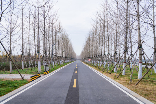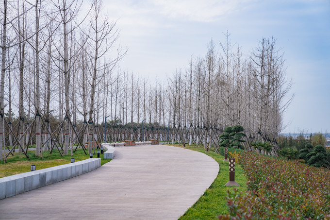 由于现在是冬季,许多植被只能等到夏天和秋天才能看到他们最美的样子,但是庞大的绿化规模还是我非常的震撼,沿河两岸成群成片的银杏林和花海,虽然没有红花绿叶的衬托,望不到头的景深,笔直的休闲步道,成垛的河心小岛,都能焕发美好的心情。