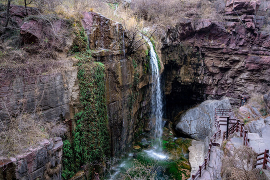 红石峡又名温盘峪,峡谷深藏于地下68米,集秀、幽、雄、险于一身,融泉、瀑、溪、潭于一谷,素来享有“盆景峡谷”的美誉。
