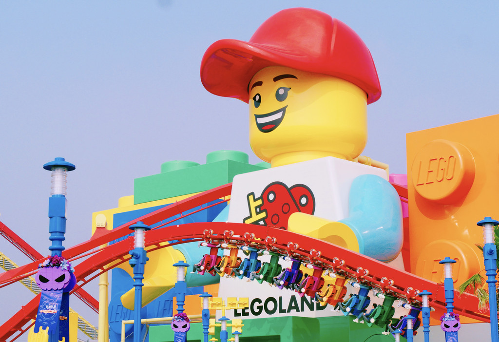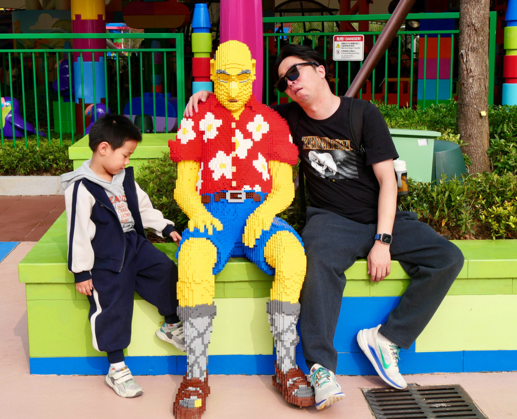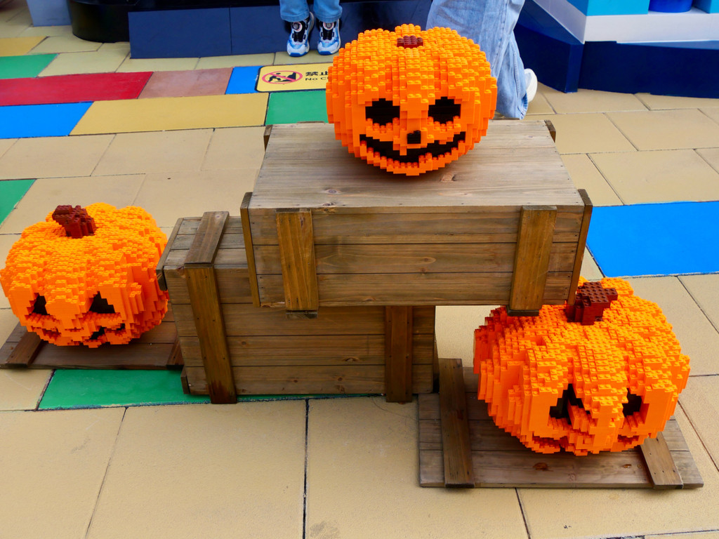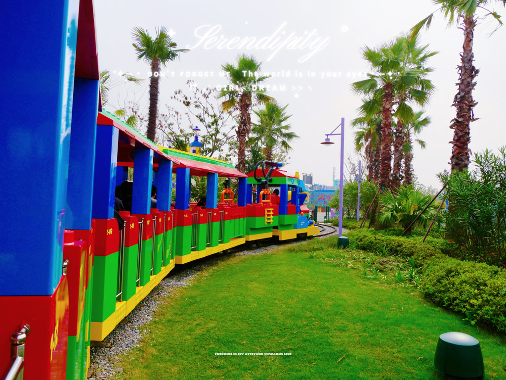 “哇”的一声此起彼伏,抬起头正好看见大的飞龙 过山车呼啸而过,七彩的座椅带着来游园会庆祝的人们,真的好欢乐!但是,在看到巨大的乐高人偶时,还是不小心想到了。。。