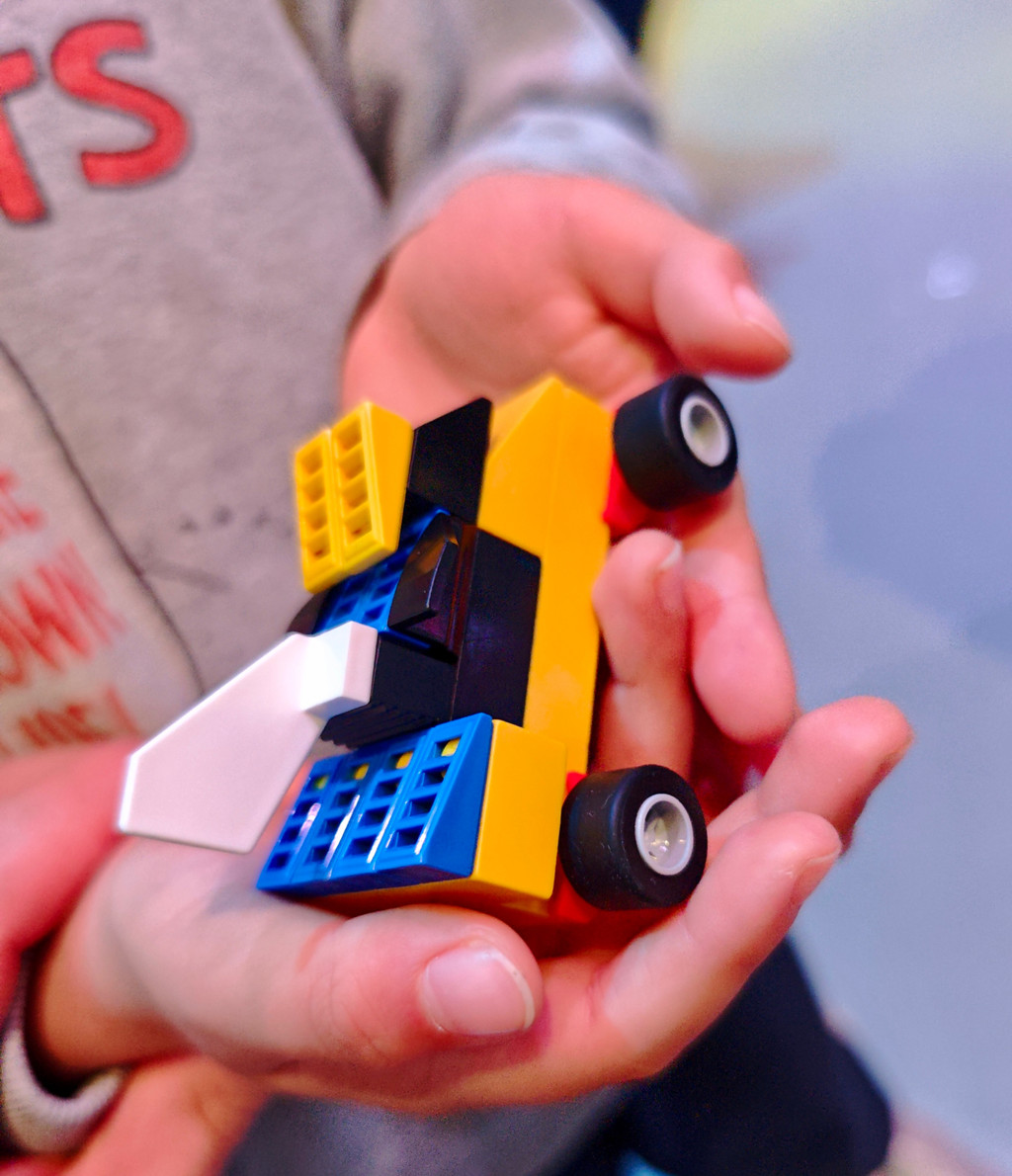 这里有工作人员维持秩序,每个小朋友进去可以得到小轮胎,搭建自己心仪的车,出来时要把轮子还回去。
