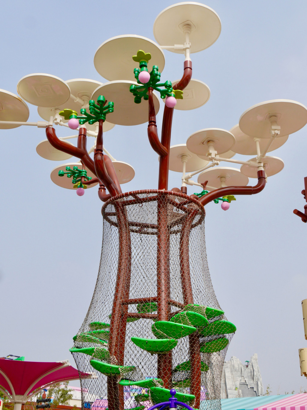 大约中午,队伍开始越来越长,4岁娃可以玩的每个项目都要排队50分钟以上了,也就各个区域匆匆打了卡。悟空小侠的无动力设备:花果山造型。