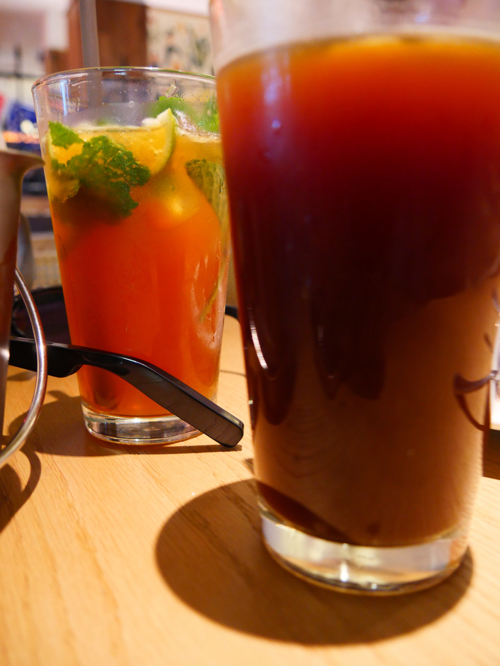临走时,喝杯冰咖啡吧!一坐到沙发上,3个人都瘫成液体,小餐厅很漂亮,东西也不错,加上万圣节的氛围,如果没开车,真想喝两杯。