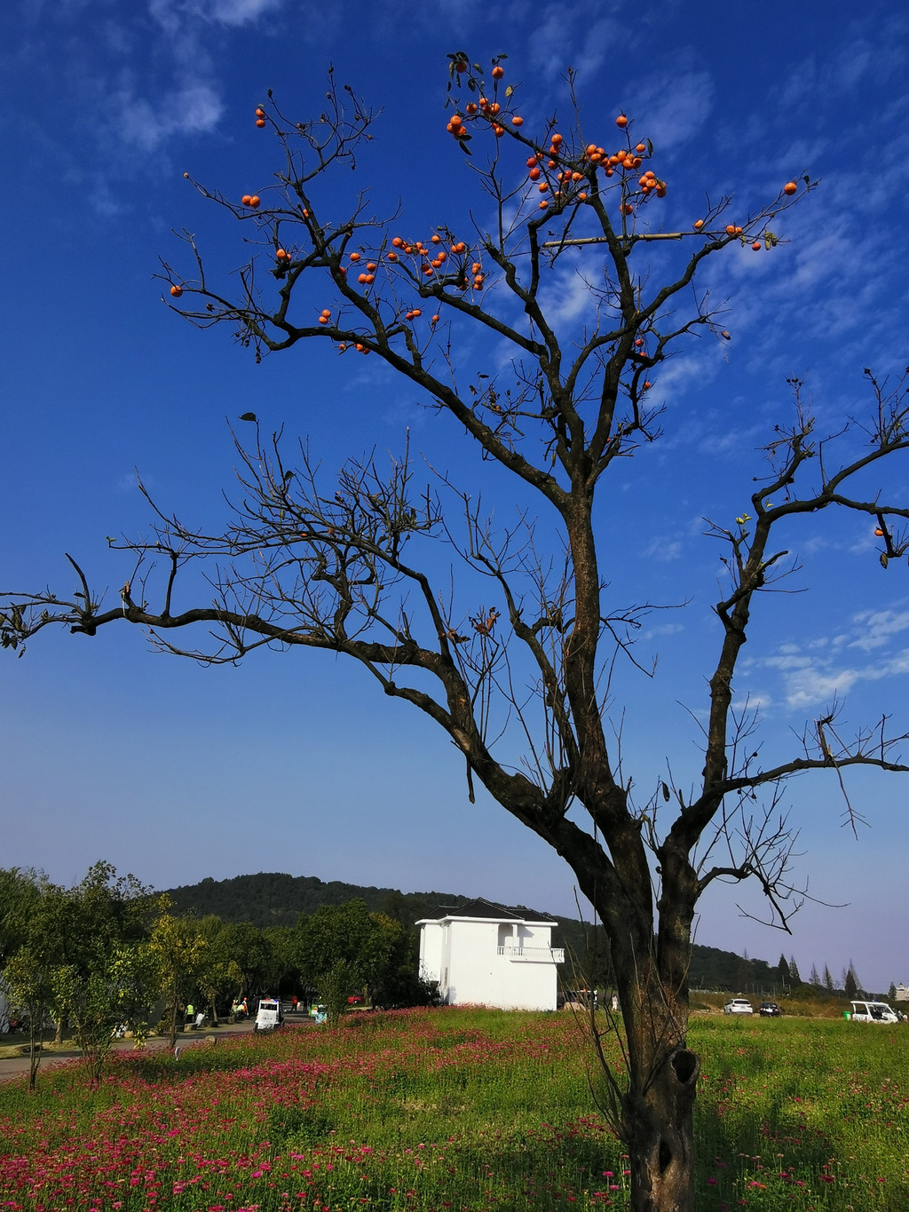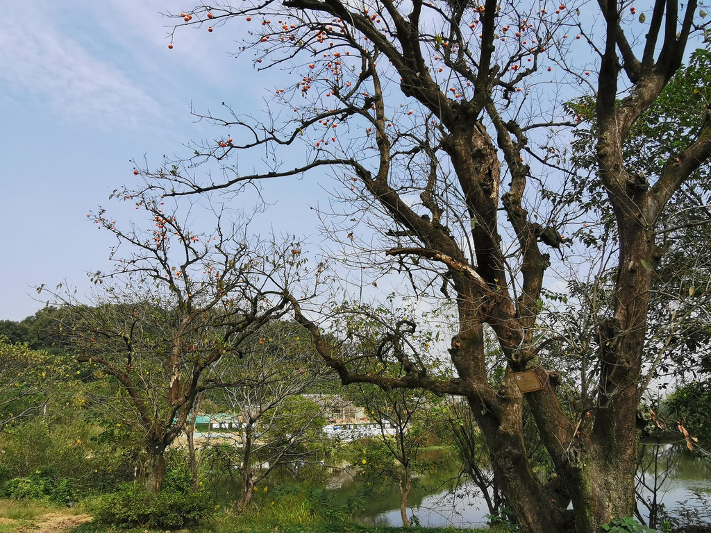 海盐南北湖三面环山,外围是杭州湾,登上白云阁或鹰窠顶,可以一览山、海、湖;半山林间隐藏着云岫庵、谈仙石城,石城相传为南唐道家谭峭炼丹得道之处。天空澄蓝的透明,房屋的黛瓦白墙线条分明而干净,叶子落的差不多的柿树几乎就剩了黝黑而随意伸展的树枝树干,而半午后轻暖的阳光刚刚好斜斜地落在那些还挂在树梢那圆红的柿子上—秋色天地间……这个季节,南北湖的桔子可是不可错过。