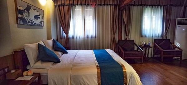 一晚的住宿我们住进了梅花洲的梅花洲酒店,酒店前台就在景区入口处,登记好会有管家带我们走进景区,房间就在景区里面这一栋栋古朴的建筑里。