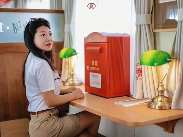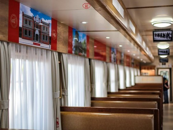 1、2号红色主题功能车厢营造复古氛围,分别设 “火车读书角”、“火车邮局区”,并陈列老物件实物+老照片展示画框。3-9号普通车厢设嘉兴市下辖区县文旅游资源图片展示,座位采用皮质软座。