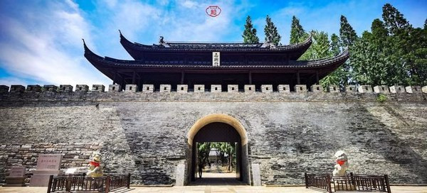 城门为拱券门,高5.4米,跨经4.5米,拱券用砖联锁平砌,上建一城楼,平面为三间带回廊,二层重檐歇山顶,梁架为五架梁带双下廊。