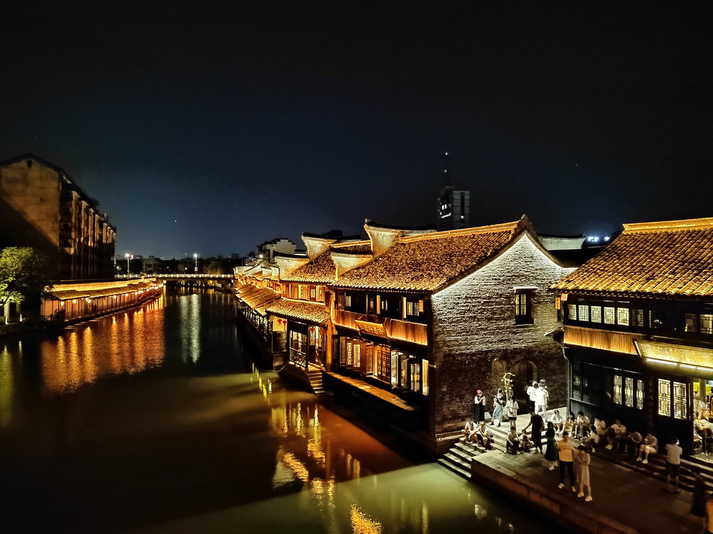 月河历史街区是典型的江南水乡古镇,小河狭弄迂回曲折,旧式民居两岸错落,游船舟舫穿梭不绝,每每入夜便见万家灯火。这里沿街遍布店铺,商业成熟,更神奇的是,街区深处居然还有一片酒吧区……
