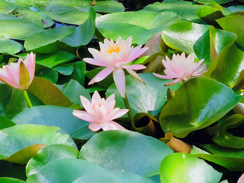 往年的国庆一般都已穿上卫衣,兴许早晚还得加件外套,今年的国庆让人仿佛仍身处盛夏,太阳火辣辣地照着,没走几步路就能汗如雨下,湿了衣衫。甚至夏莲都不觉秋意,依然盛放池中。