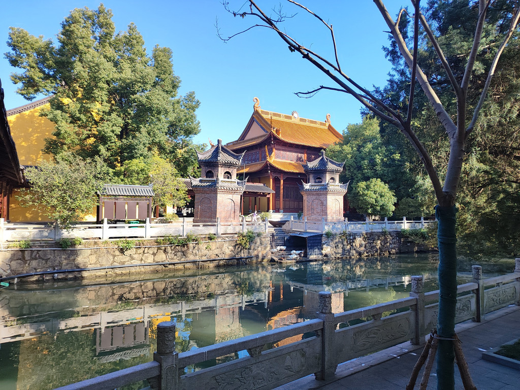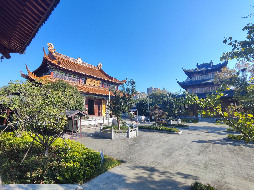 能仁寺就在小蓬莱旁边,钟声悠扬,寺内的大雄宝殿庄严肃穆,石碑上刻着岁月的痕迹,古银杏树依旧挺拔,守护着这片土地。能仁寺前的一棵2500年的古银杏树,秋季的银杏金黄可掬,给人以峻峭雄奇、华贵典雅之感。