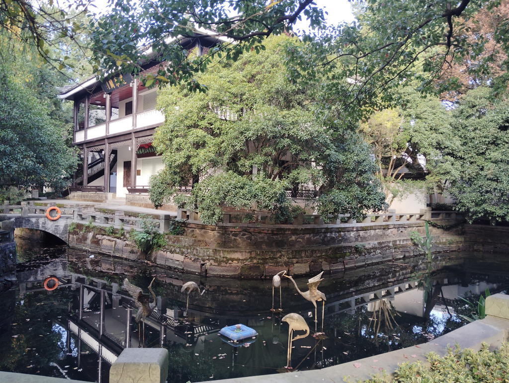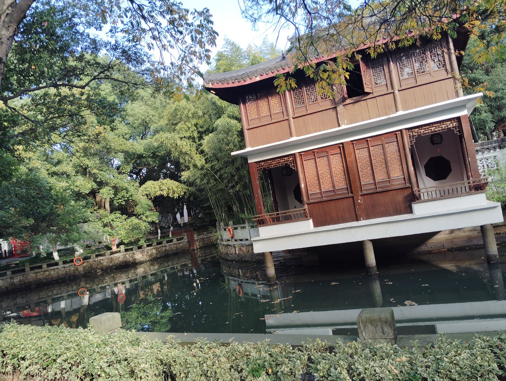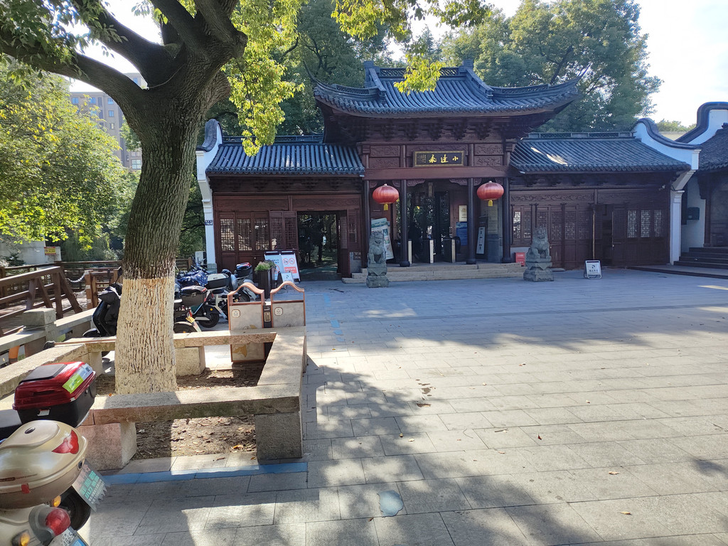 随后,我漫步至小蓬莱公园,这里始建于1400多年前,原为能仁寺的环清房,1931年辟为公园。面积1万多平方米,四面环水,景色旖旎,环境清静。园内有千年古银杏,被誉为“浙江省十大最美银杏树王”,守护着这座小镇,见证了嘉兴革命的星火。您可以漫步在曲径通幽的小道上,感受古木带来的沧桑感。公园的蓬莱阁是全园最高的建筑,形态典雅,登楼可眺望全园景色。