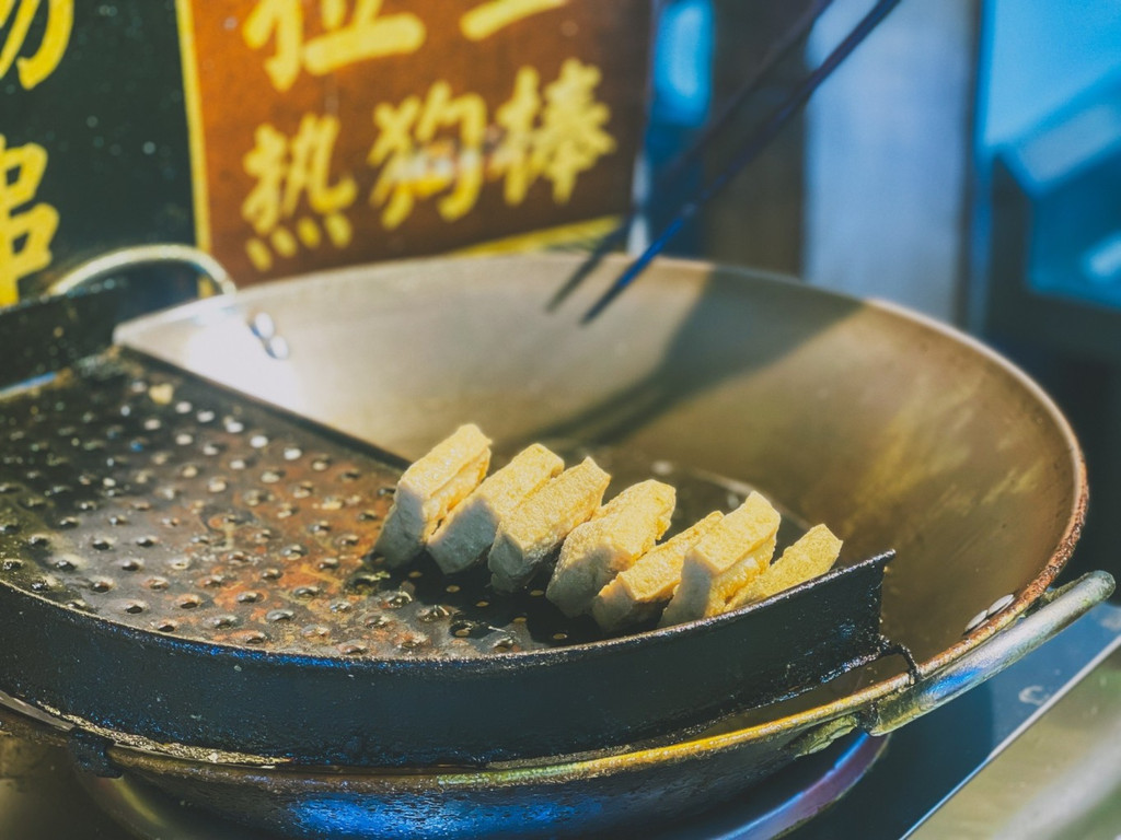 然后出来穿过人来人往的烟雨长廊,看到了为店铺营业的猪,还有蘭芳园,又路过一个巷子口的管老太臭豆腐,就支了一口锅,果然成本略低3元。