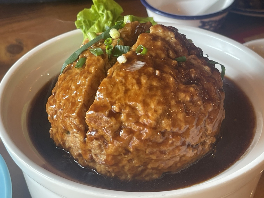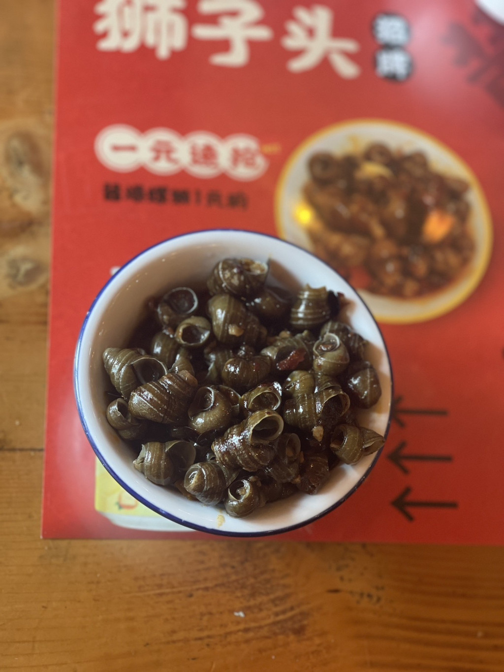 排号子等到电话,差不多就是10-15分钟,这里的服务很棒,全程被暖到了,巨无霸狮子头,真的巨大,且很嫩,1块钱秒杀的螺丝,虽然瘦了点但很干净,葱油鸡好大一盘,好吃得很,小番茄和炸桑叶都是送的,Nice~番茄蛋汤很清爽。甜品是点评上打卡收藏的活动。这一顿,扶墙出了