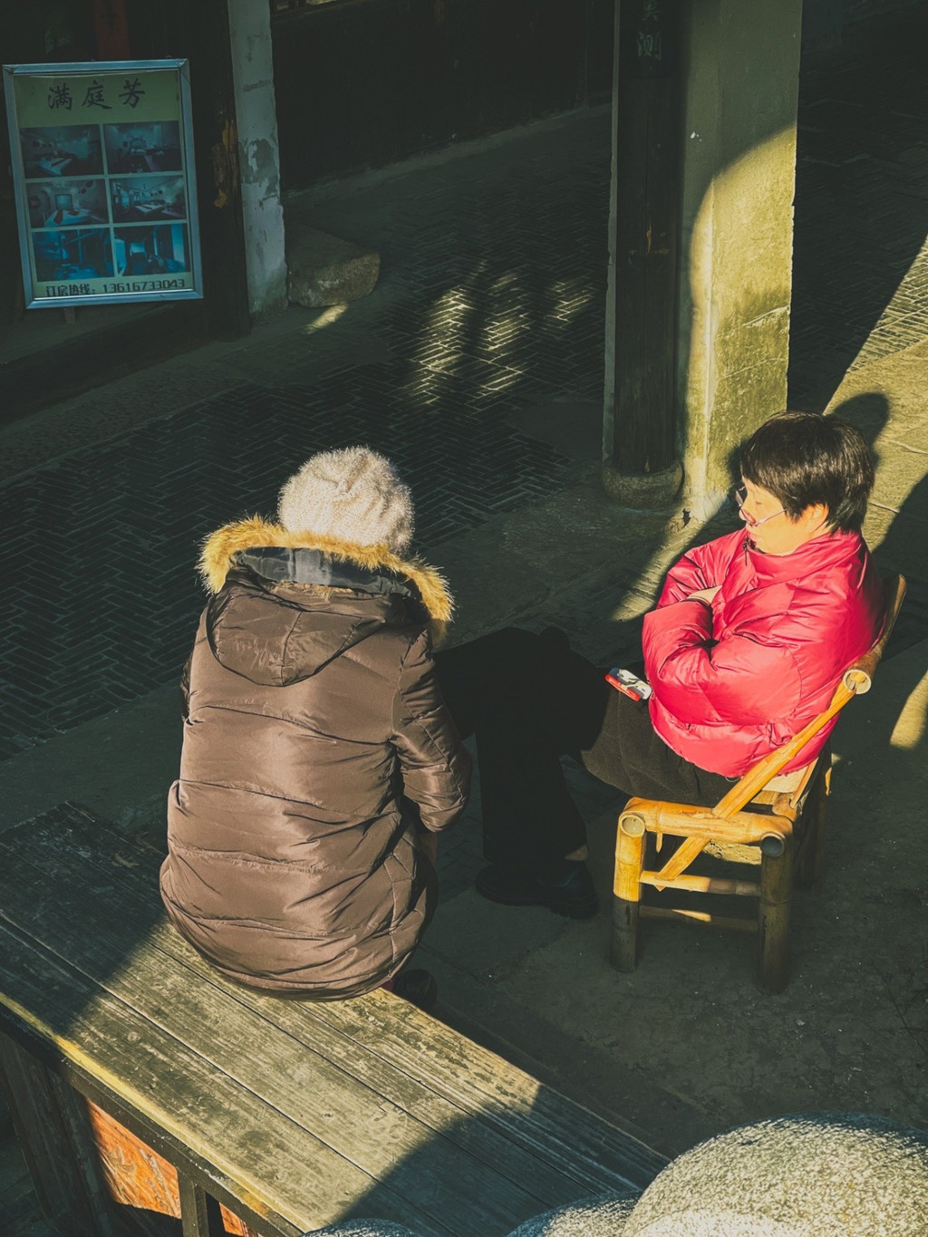 问管家要了一张地图,还有网上的图结合起来。我们过了卧龙桥,去往四贤祠弄的路上,拍风景。然后路过一个手艺人的店,我很感兴趣。买了一个木雕的冰箱贴,后来下午又去店里和老板聊了一会儿天,他说是家里三代传到他头上,女儿会一点点,但现在没太大兴趣。