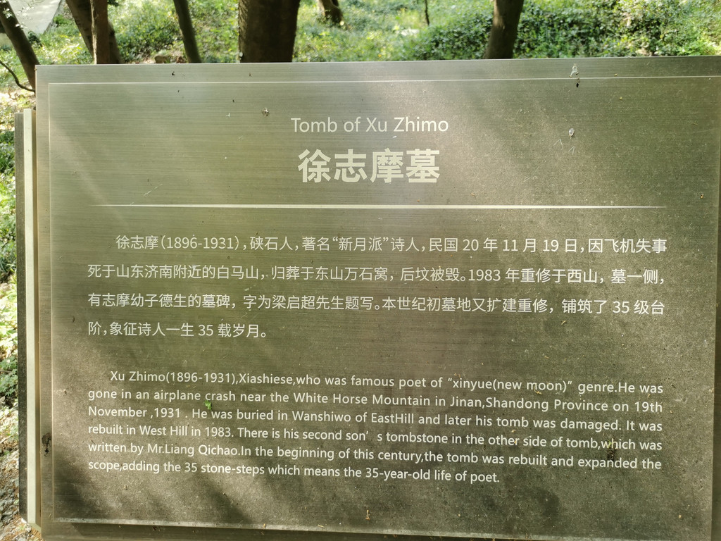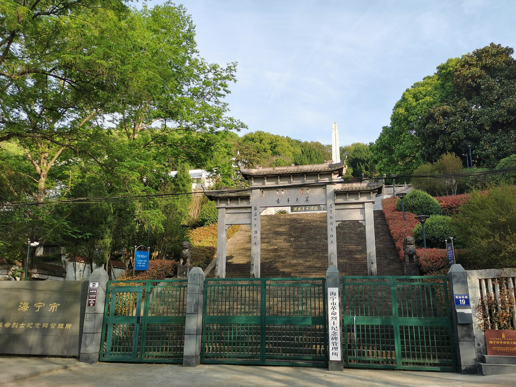 行迹:西山公园西门-顾况白居易像广场-西关厢旧址碑-惠力寺经幢-紫薇桥-广福寺-紫薇阁-徐志摩墓-钱君匋墓-钱君匋艺术研究馆-海宁博物馆-东山公园西门-智标塔-老残安宅摩崖石刻-小赤壁-海宁市革命烈士纪念碑-硖石圣衣圣母堂