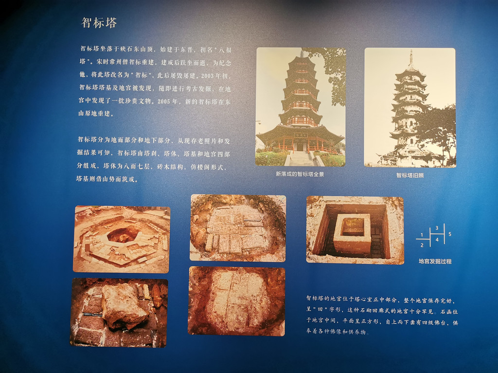 东山智标塔始建于东晋,而宋时常州僧人智标重建,因以其名而命名;历史上屡次毁建,2005年现塔新建之前,塔基与地宫于2003年被发现并进行考古发掘,出土文物目前多藏于海宁博物馆。东山南侧半山麓有老残安宅摩崖石刻,据说是清末“老残游记”作者刘鹗游历经过此处留下的遗迹。海宁博物馆最早成立于西山公园惠力寺;目前馆藏二楼是硖石灯彩馆,一楼书画馆等,负一层为“海藏遗珍”文物精品馆,包括新石器马家浜崧泽良渚各时期陶器玉石器、宋元陶瓷器物、海宁当地墓葬出土文物以及智标塔地宫出土器物等。