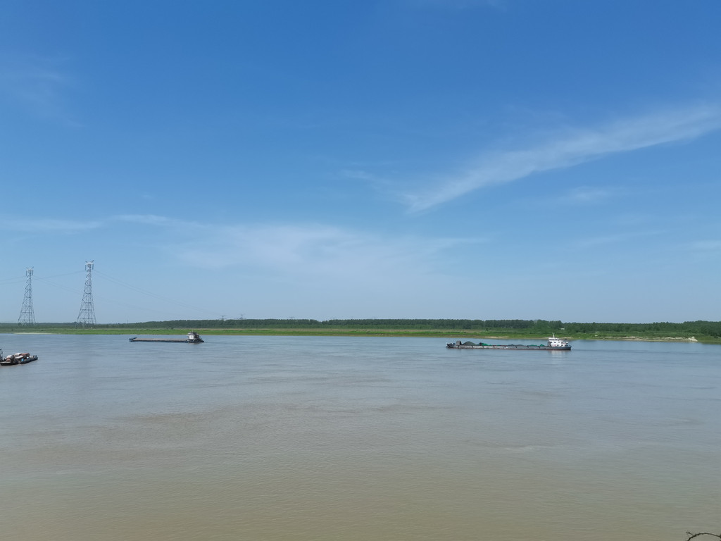翼江亭远眺长江,江面很宽,天空很蓝!