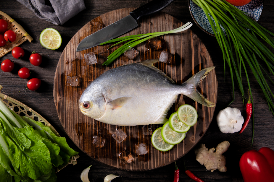 金鲳鱼是名贵海产经济鱼类之一,低脂肪、高蛋白,每100g鱼肉中就含15.6g蛋白质,烧热的油淋在葱丝上,鱼肉质滑口,口感与鲜度都是一绝。