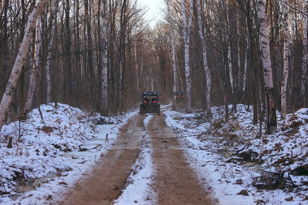 二人一组,只要是会驾驶的朋友都可以开,操控相对简单。夕阳下,全地型越野摩托UTV穿梭在雪地之上的白桦林间,那感觉真好。
