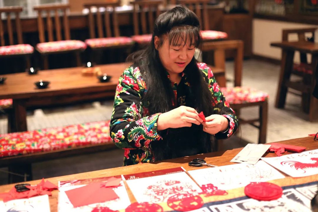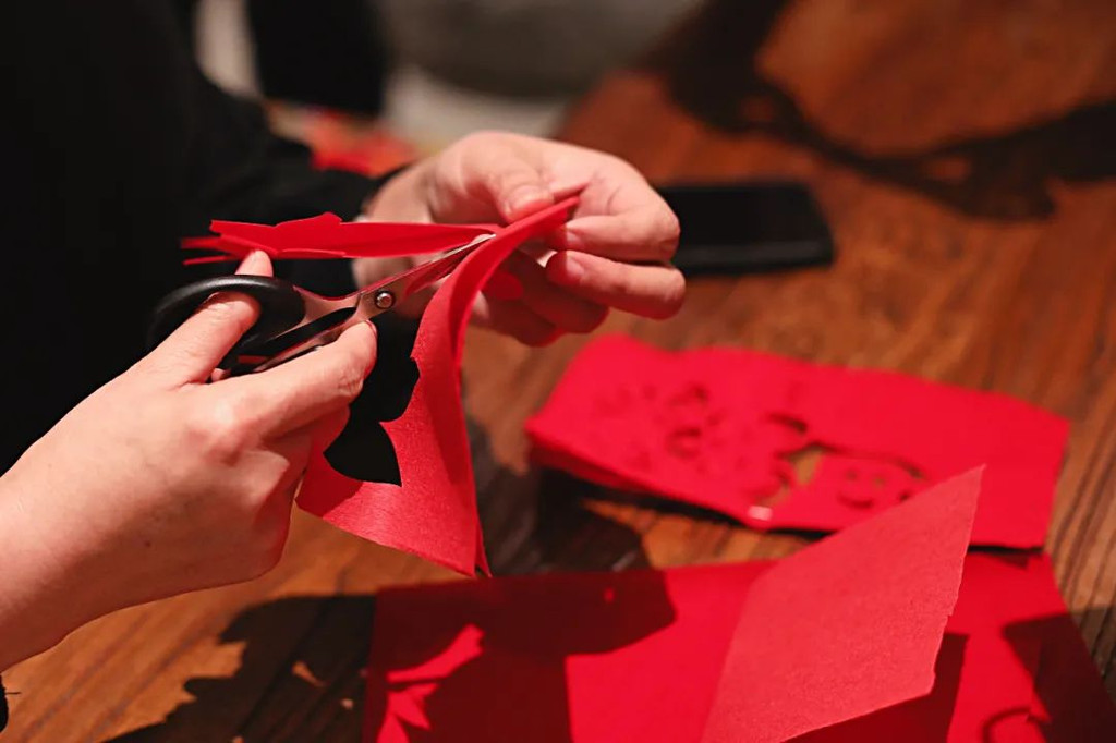 那天晚上,剪纸老师陈女士,还教我们剪窗花。