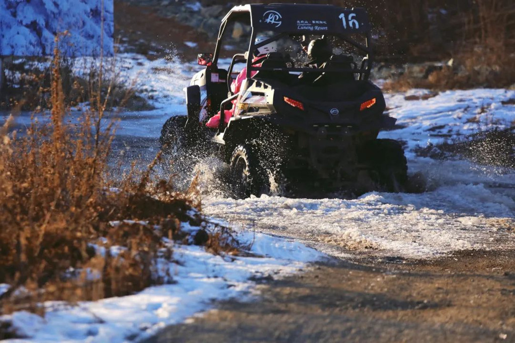 在长白山鲁能胜地,除了滑雪,还可以感受全地型越野摩托UTV带来的刺激感。