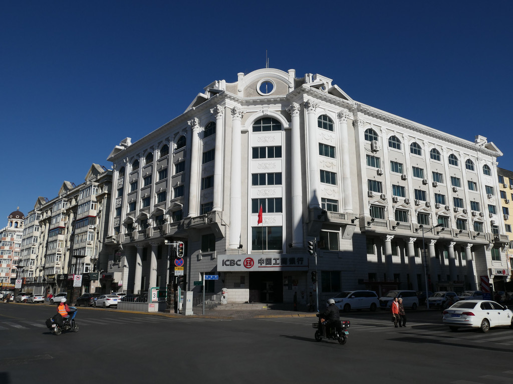 ↗工商银行革新支行,果戈里大街123号,近革新街路口。这个一看就是仿古建筑。历经沧桑,能保存到现在的真古董已经不多了。