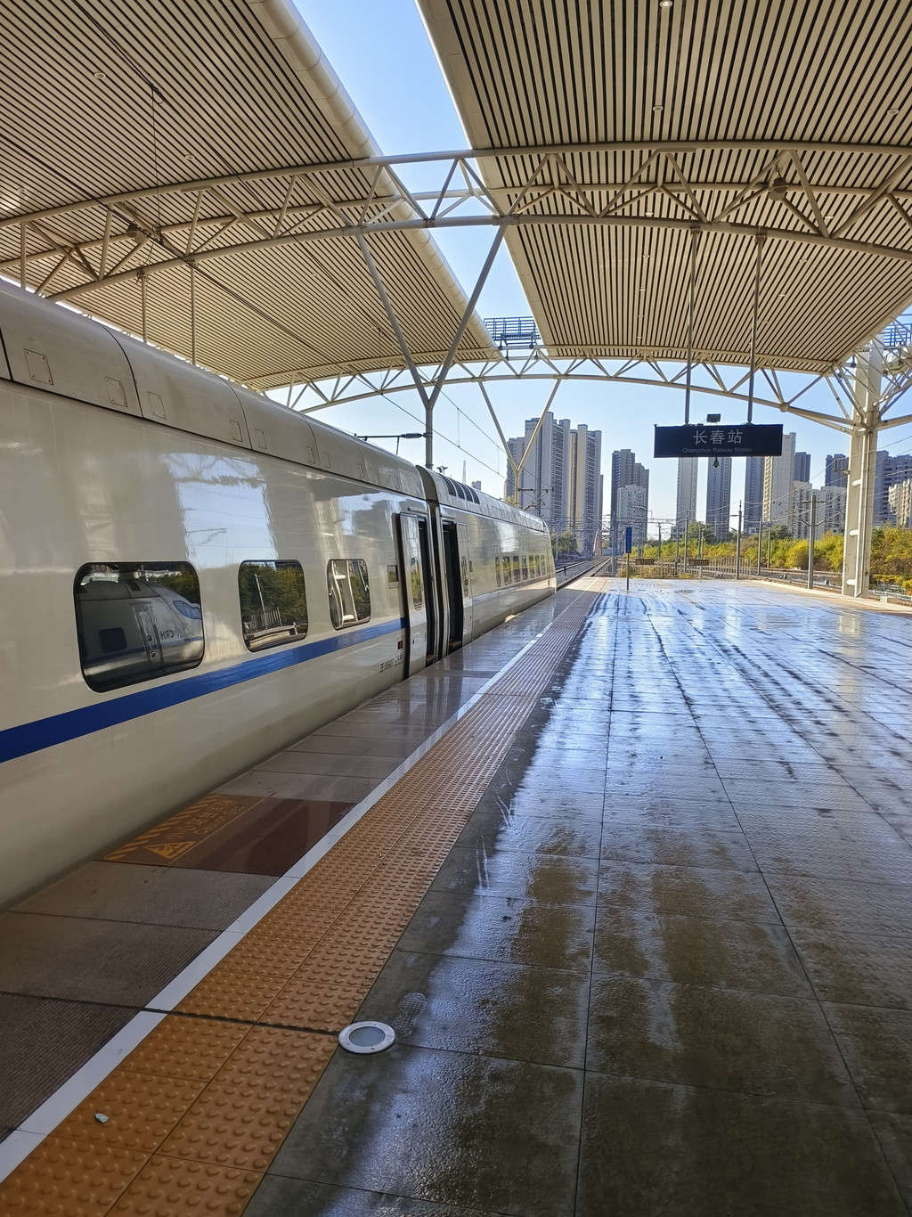 返程时间到了,从长春站乘坐城际列车前往长春龙嘉机场。全程仅需14分钟,但长春站比较大,龙嘉机场高铁站出口到机场T2航站楼的距离又比较远,步行约需20分钟。所以游玩时要注意控制时间,如从长春市区出发,建议至少提前两个小时。