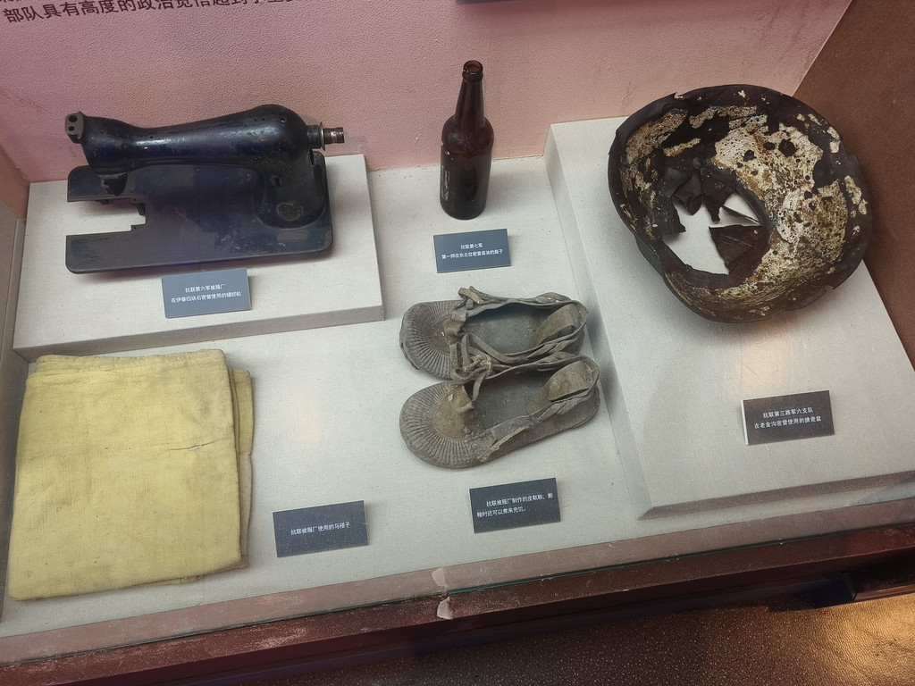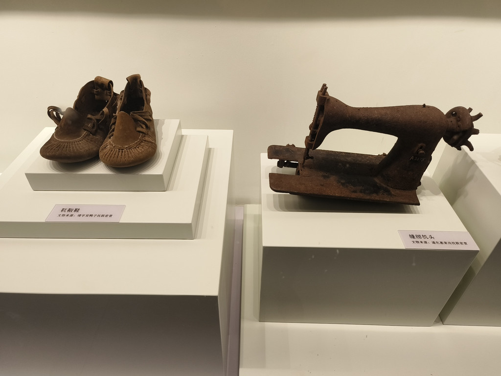 ↗抗联第六军被服厂使用的缝纫机、制作的靰鞡鞋等