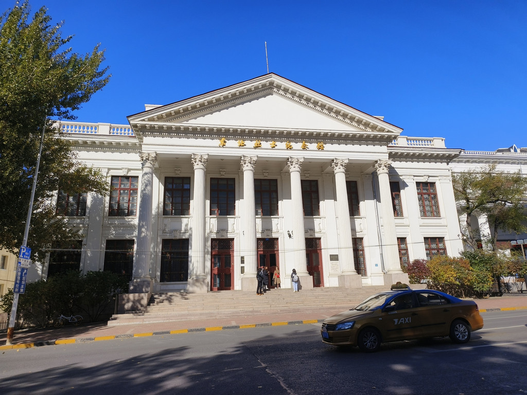 ↗亚细亚电影院,位于果戈里大街414号,近邮政街路口。建于1907年,时为“乌克兰俱乐部”。1925年改为“基干特”电影院(俄语“巨人”之意)。1930年6月中国武士吉万山(1903—1978)在此勇挫俄国大力士杰力柴夫而轰动一时。1936年日本人强行接管,改名“亚细亚电影院”。“文革”期间易名“东方红电影院”,后改回现在的名称。