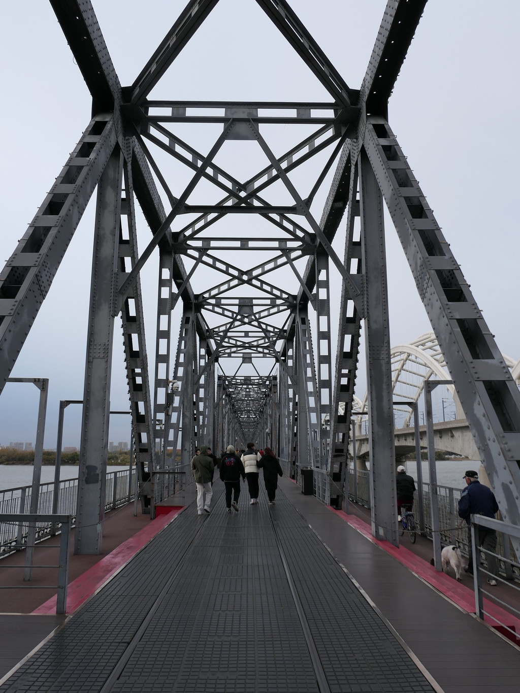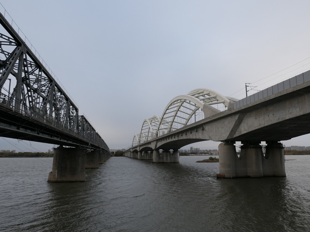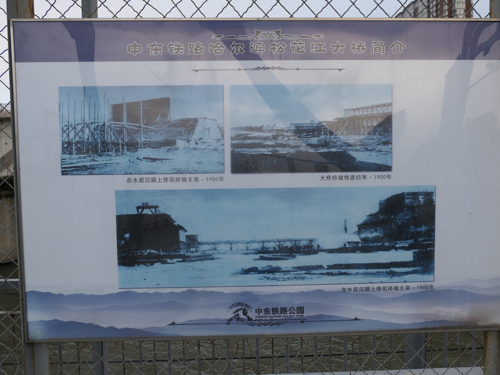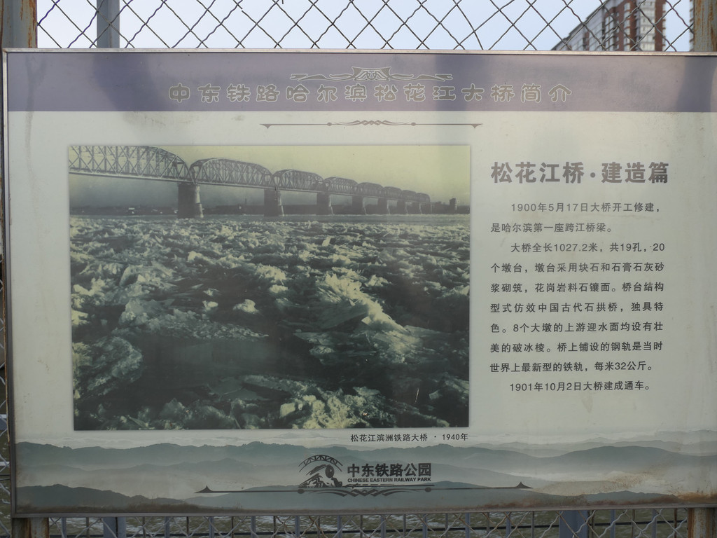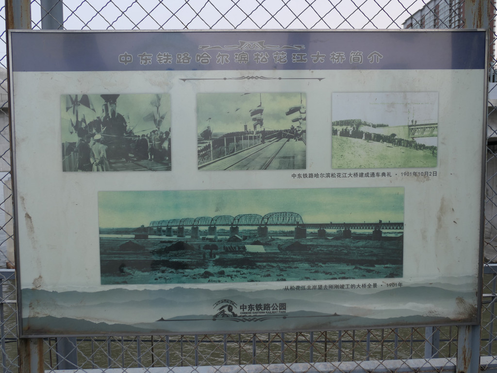 中东铁路哈尔滨松花江大桥位于斯大林公园东侧,全长1027.2米,1900年5月17日动工兴建,1901年10月2日建成通车,是中国铁路最早建成的超千米特大桥梁,也是哈尔滨第一座跨江桥梁。