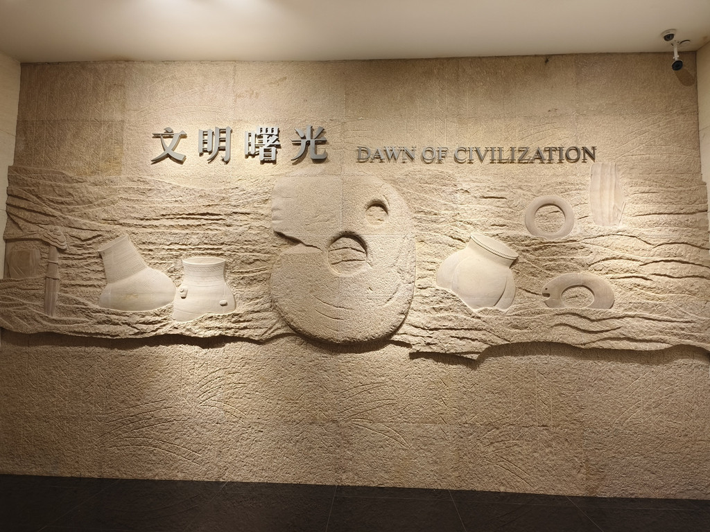 “文明曙光”单元展示旧石器时代到青铜时代吉林省的历史,主要展品包括原始陶器和打制石器等。